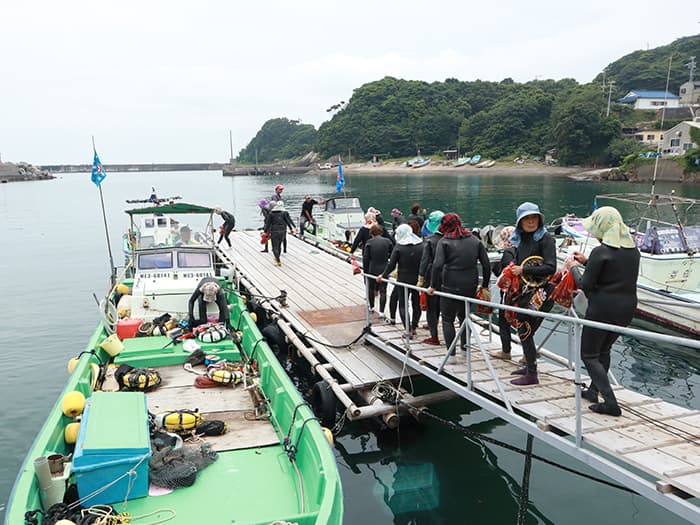 放流事業の効果もあってか、石鏡町では約6年前から黒鮑の水揚げが昭和の最盛期近くまで復活してきています。海女さんたちの笑顔、そして伝統漁法の継承。私たちの取り組みが、確実に地域の未来につながっていることを実感しています。